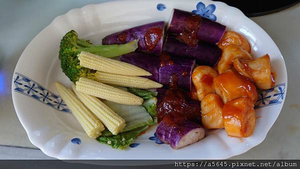 在川燙玉米筍和青花菜以及茄子